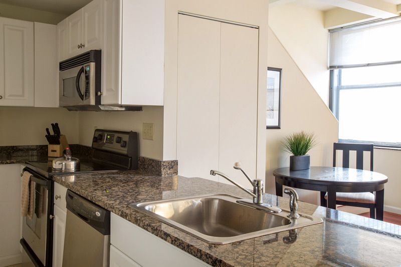 Each light and airy apartment has a personality all its own and every comfort you desire. From stylish, oversized windows to carefully selected wide-plank cherry wood flooring and 12- to 22-foot cathedral ceilings, the look and feel of old-world elegance is combined with today’s must-have features: a state-of-the-art Electronic Key Fob and Mobile App Entry System and an audio entry system so you can immediately identify your guests; matched Baltic brown granite countertops, sills and bathroom vanities; washer and dryer; and Fiber Internet. Featured residences offer skylights, stainless steel appliances, studies, lofts, whirlpool tubs, and floor-to-ceiling windows with views of the Green and the harbor.